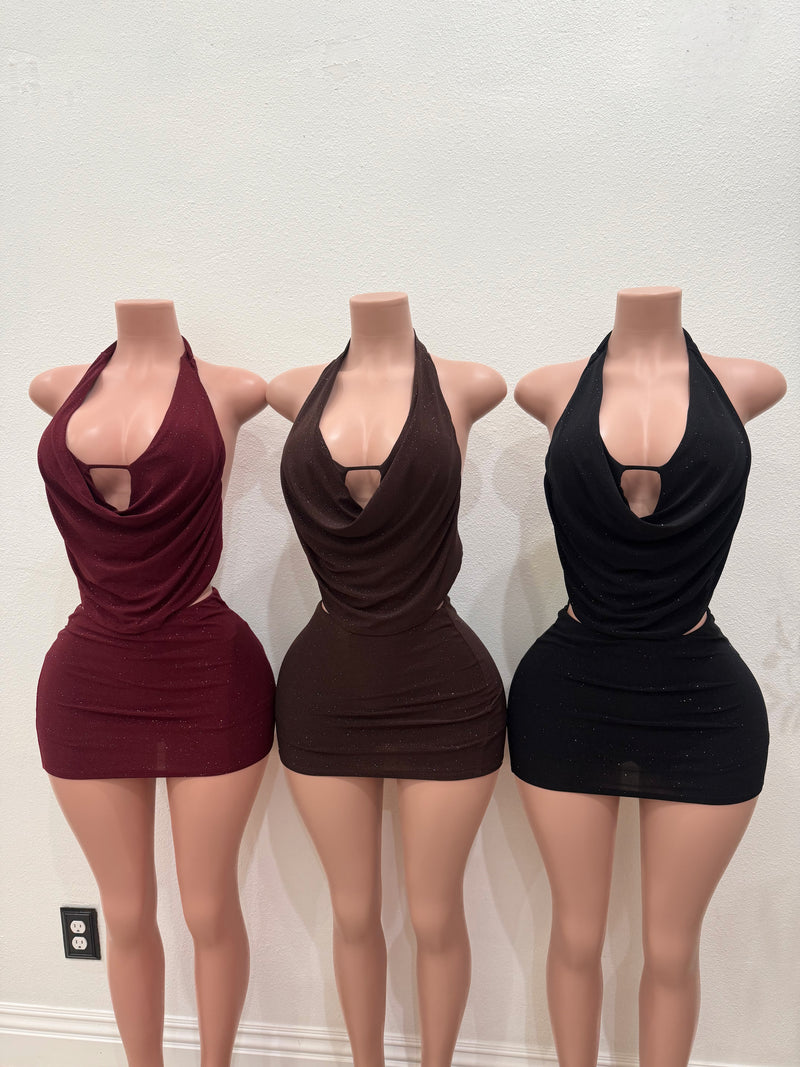 BRITNEY LEATHER HALTER DRESS (BLACK)