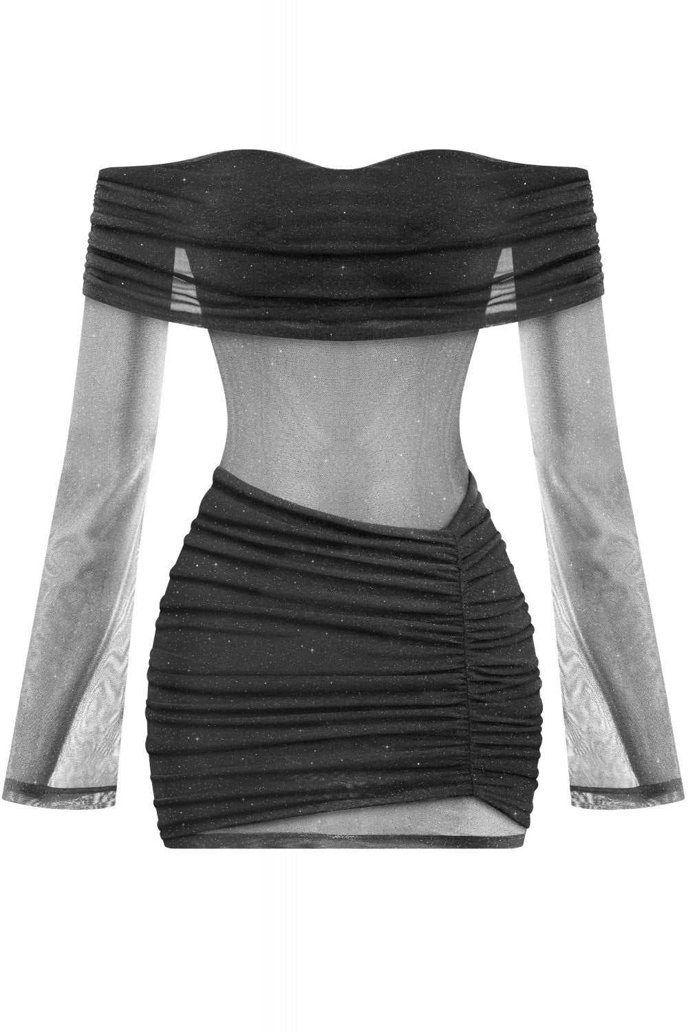 MESH SEE THROUGH OFF SHOULDER DRESS (BLACK)
